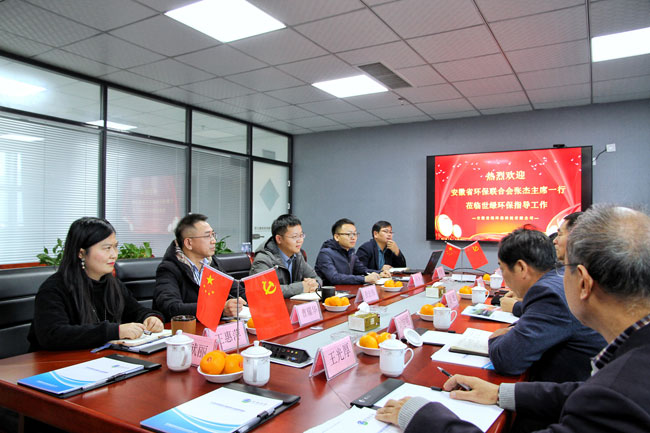 11月20日下午,安徽省環(huán)保聯(lián)合會主席張杰、常務(wù)副主席劉定明、副主席兼秘書長賈宏群等領(lǐng)導(dǎo)一行,蒞臨我公司進(jìn)行考察交流,我公司董事長查宏偉、總經(jīng)理石臺等熱情接待并座談。