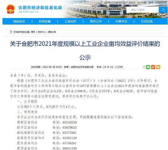 不以規(guī)模定標(biāo)準(zhǔn),而以“畝均論英雄”。近日,根據(jù)《合肥市工業(yè)企業(yè)畝均效益評(píng)價(jià)辦法(試行)》(合畝均辦〔2022〕2號(hào))文件規(guī)定,合肥市畝均效益評(píng)價(jià)工作領(lǐng)導(dǎo)小組辦公室對(duì)全市1977家規(guī)模以上工業(yè)企業(yè)2021年度畝均效益情況進(jìn)行了綜合評(píng)價(jià),共評(píng)出A類企業(yè)414家,B類企業(yè)896家,C類企業(yè)575家,D類企業(yè)92家。經(jīng)市畝均效益評(píng)價(jià)工作領(lǐng)導(dǎo)小組會(huì)議研究通過,將評(píng)價(jià)結(jié)果予以公示。安徽世綠環(huán)保科技有限公司在此次綜合評(píng)價(jià)中,被評(píng)為A級(jí)。